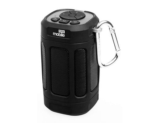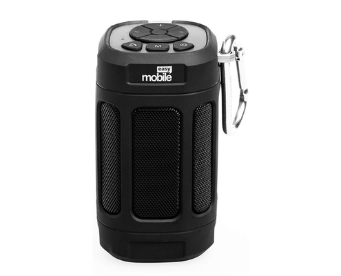 Caixa de som max box preto. Caixa de som portátil sem fio. Bluetooth, 8w (4w x 2), som 360, suporte para bicicleta e controle remoto. Possui rádio e leitor de cartão de memória, preto.