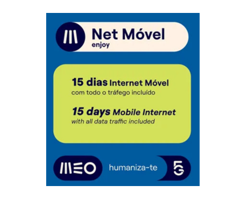 Pronto a usar com todo o tráfego incluído, válido por 15, 20 e 35 dias. Compatível com tecnologia 5G e com equipamentos que suportam formatos SIM ou Micro SIM.