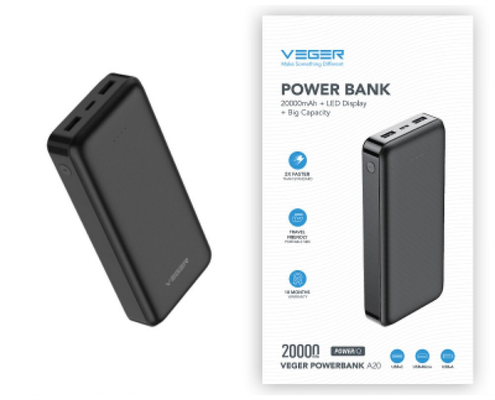 ● Grande capacidade de 20.000 mAh