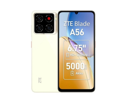 O ZTE Blade A56 combina design elegante com desempenho equilibrado, oferecendo ecrã de 6,75″, 4GB+8GB de RAM, 64GB de armazenamento e bateria de 5000 mAh.