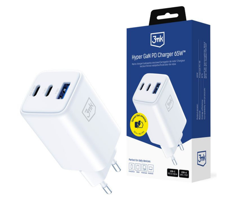 • CARREGADOR 3MK USB-C USB-A / 65W BRANCO